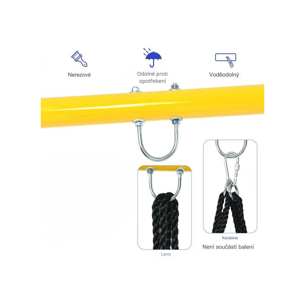 Dank der korrosionsbeständigen Pulverbeschichtung kann er problemlos im Freien, aber auch in Innenräumen eingesetzt werden. Sie können es für verschiedene Arten von Schaukeln verwenden.