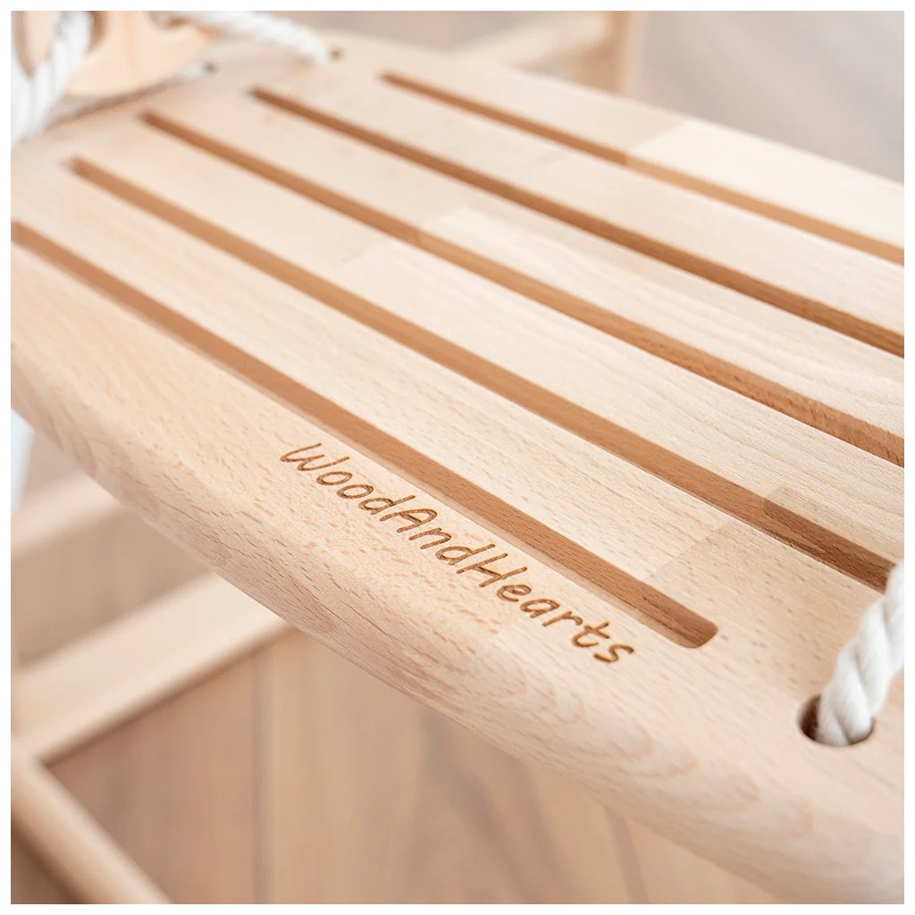 Dětské hřiště je vyrobeno z prvotřídního masivního bukového dřeva, známého svou pevností a flexibilitou, upřednostňuje odolnost a ohleduplnost k životnímu prostředí. Použití vysoce kvalitního ekologického laku na vodní bázi zajišťuje bezpečný a příjemný zážitek ze hry a přírodní barvu dřeva s pastelovými nebo přírodními doplňky.