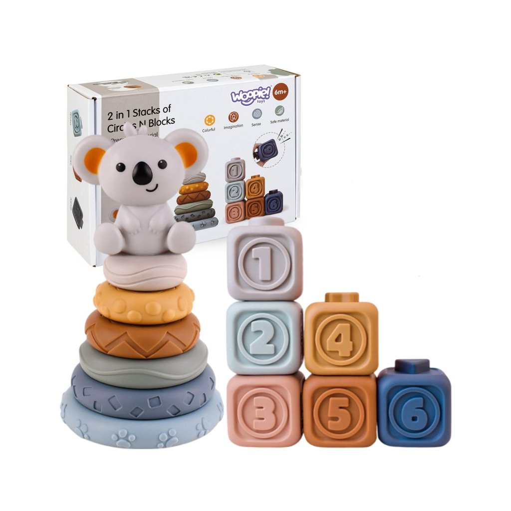 Pyramida je složená ze šesti kruhů různých velikostí, na jejichž vrcholu je roztomilá figurka koaly, a šest bloků s vypouklými čísly vytvářejí univerzální hračku, která stimuluje rozvoj dítěte na mnoha úrovních.