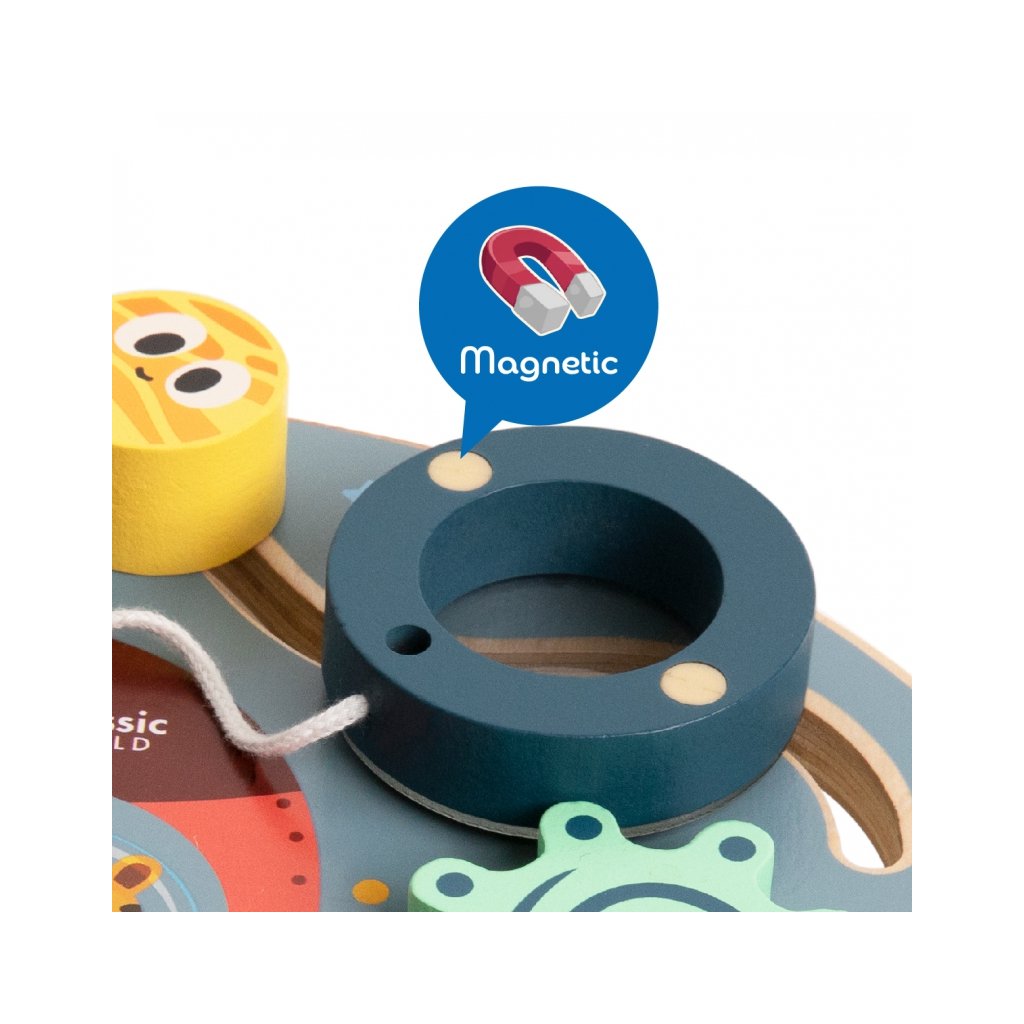 Das Spielbrett enthält ein Labyrinth, Perlen, einen Spinner, Knöpfe, ein magnetisches Element und Knöpfe, die die Aufmerksamkeit Ihres Kindes stundenlang fesseln werden.