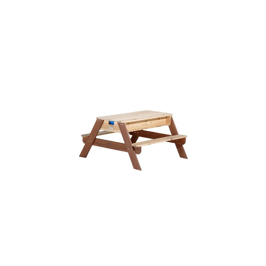 Kompakte Abmessungen. Sehr gute Stabilität des Tisches. Leicht abnehmbare Kunststoffbox für Spielzeug, Wasser oder Sand