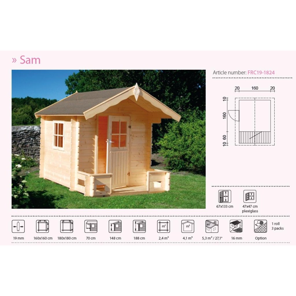 Das SAM Spielhaus im Blockhausstil mit einer großzügigen Grundfläche von 180 x 180 cm bietet einen sicheren Platz für jede Menge Spiel und Spaß.