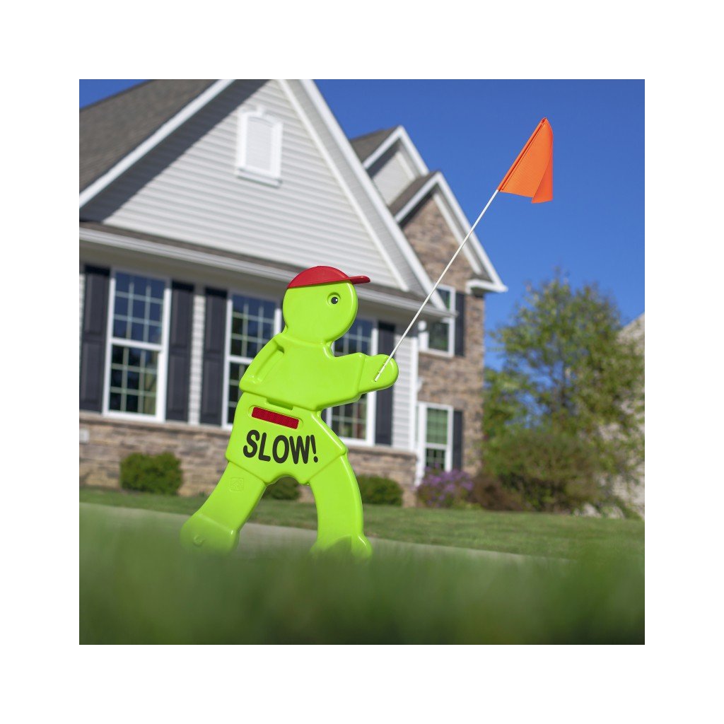 Die fluoreszierende Oberfläche mit reflektierendem Aufkleber und roter Warnflagge ist immer sichtbar, um Autofahrer und andere Menschen in der Umgebung zu warnen. Stellen Sie Safety Sam an einer belebten Kreuzung in der Nähe einer Kindertagesstätte oder Schule auf, oder stellen Sie es draußen auf, wenn die Kinder draußen spielen.