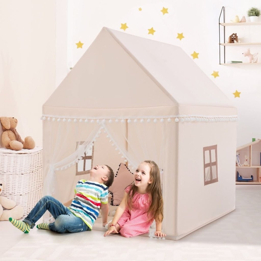 Design-Zelt in Form eines Hauses in braun, wird alle Kinder begeistern. Das Haus wird das Zimmer Ihres Kindes beherrschen!