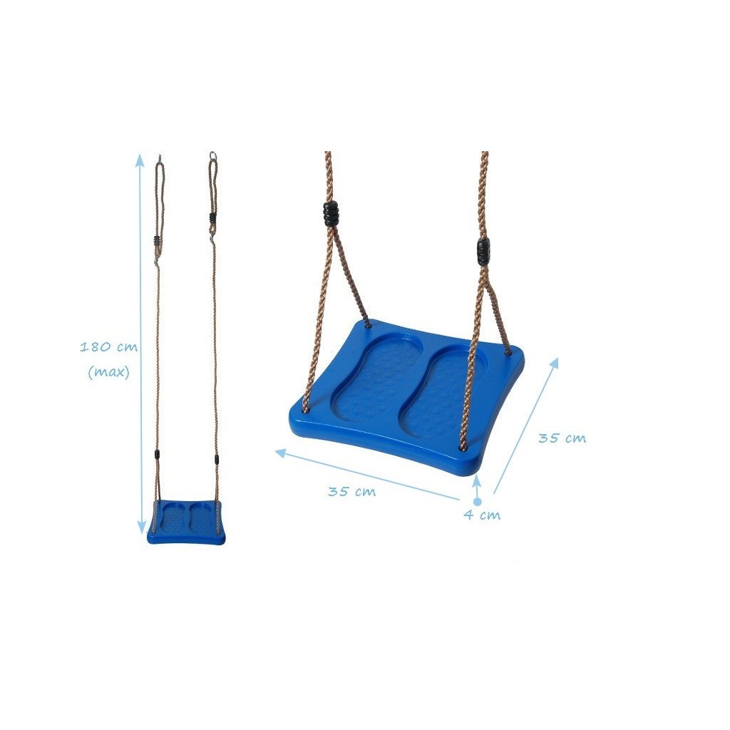 Die Schaukel besteht aus stabilem HDPE-Kunststoff, in den große Schienen eingearbeitet sind, die die Füße des Kindes beim Schaukeln sicher und fest halten. Das Schwingen wird zu einem viel größeren Erlebnis.
