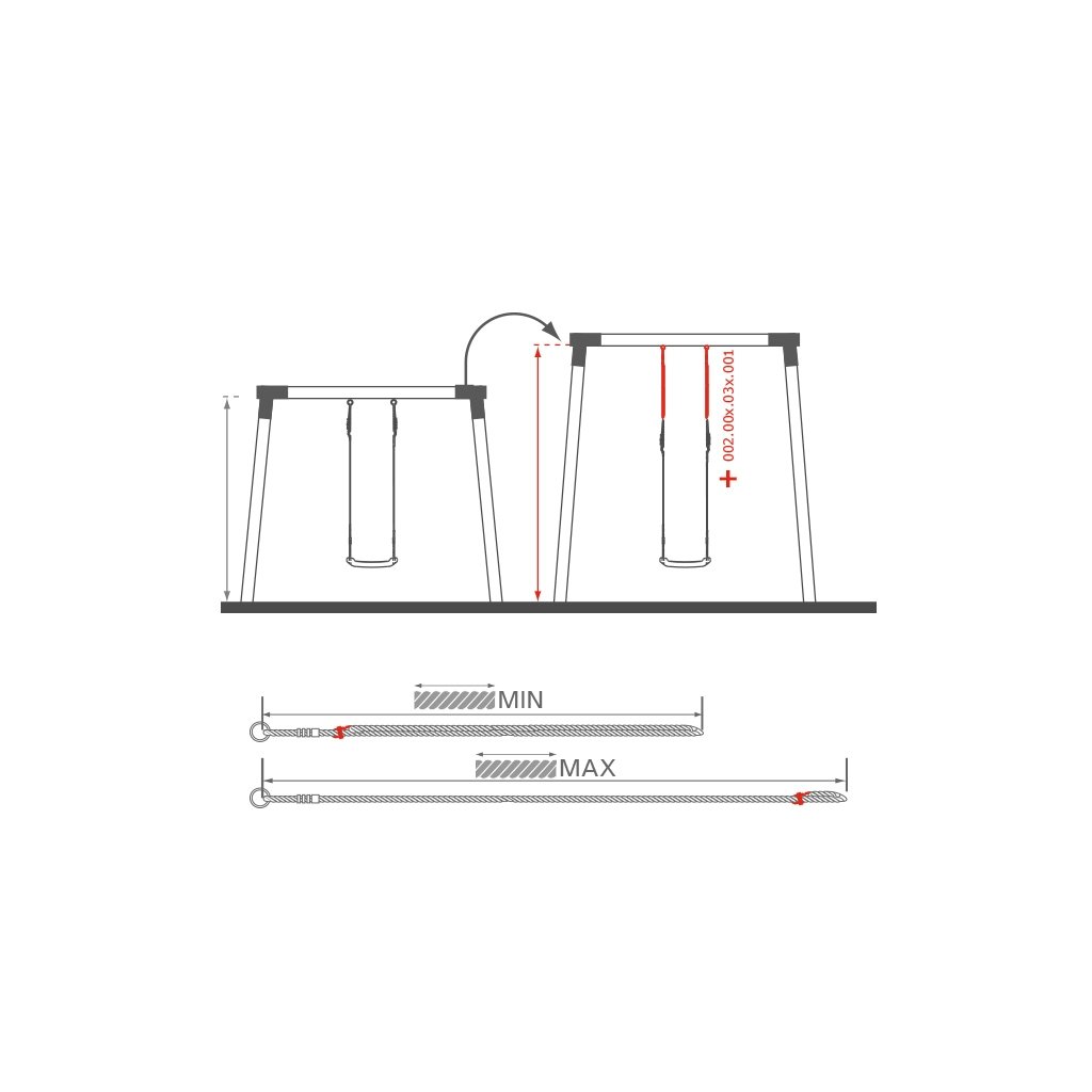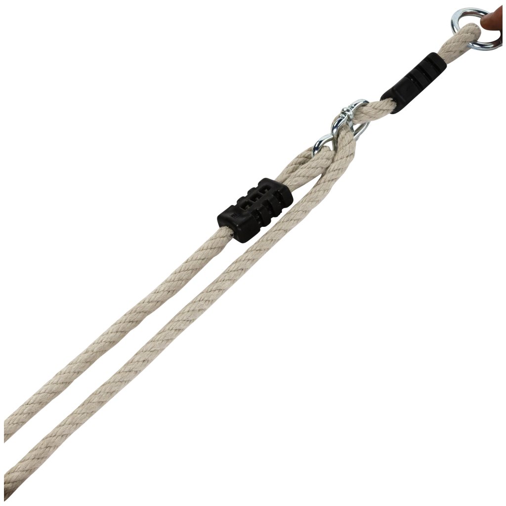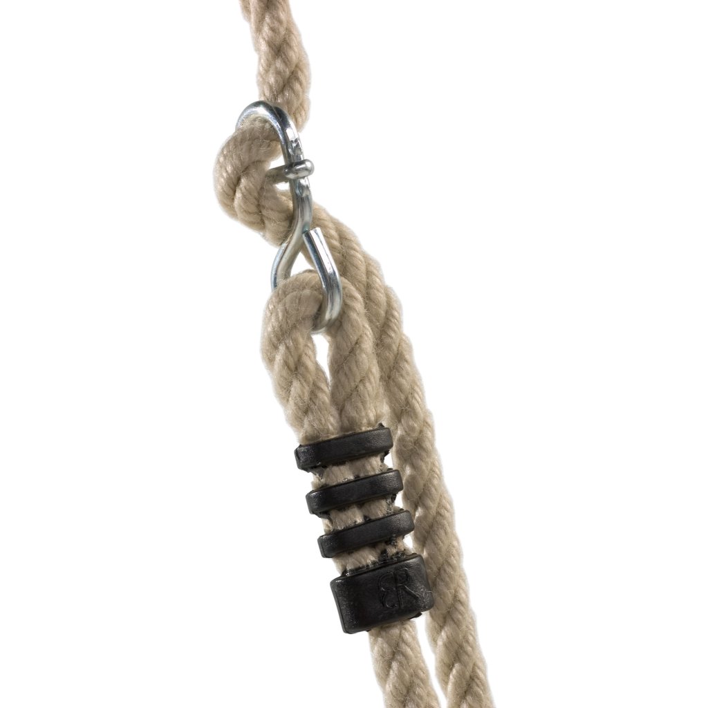 Das Seil ist mit einem verzinkten Ring versehen, den Sie einfach in die Schaukelhaken einhängen können. Die Höhe stellen Sie mit Seilschlössern ein.