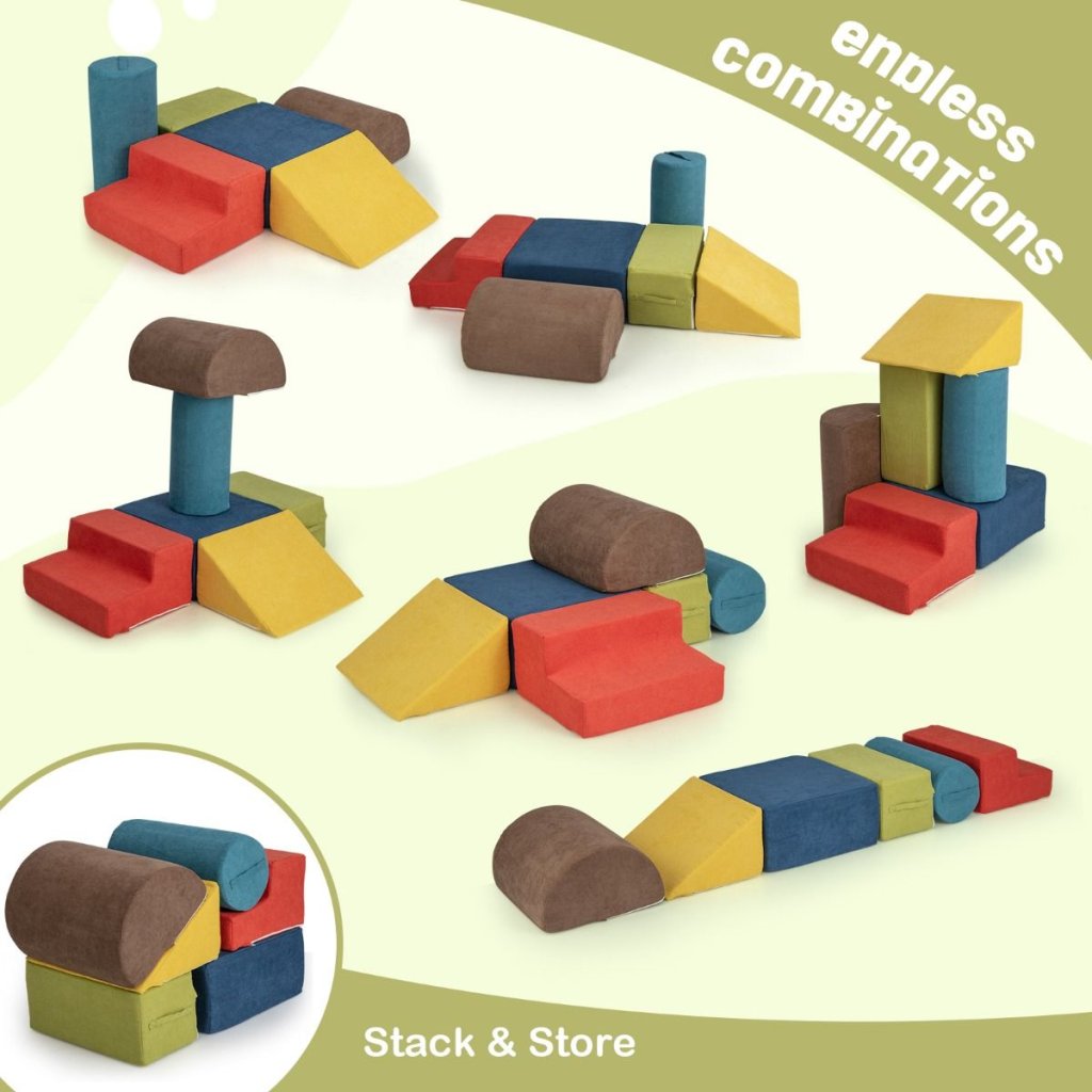 Jsou použity vysoce kvalitní a bezpečné materiály: Jsou vyrobeny z vysoce kvalitní měkké pěny a potaženy materiálem příjemným na dotek, což zajišťuje bezpečnost a pohodlí při hře. Bloky se také snadno čistí díky odnímatelným krytům a praktickým rukojetím umožňují jejich přemisťování mezi místnostmi. Naše sada hraček je lehká a stohovatelná, aniž by zabírala mnoho místa. Proto si tahle oblíbená kolekce pěnových bloků najde místečko v každém dětském pokojíčku. Je vhodná do školek, domácností, kde se děti zabaví a rodiče si odpočinou.