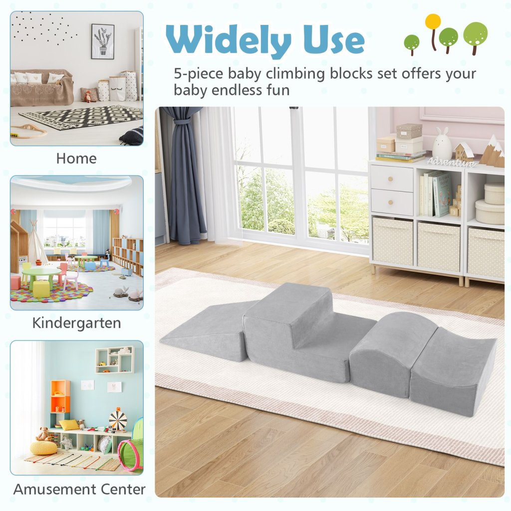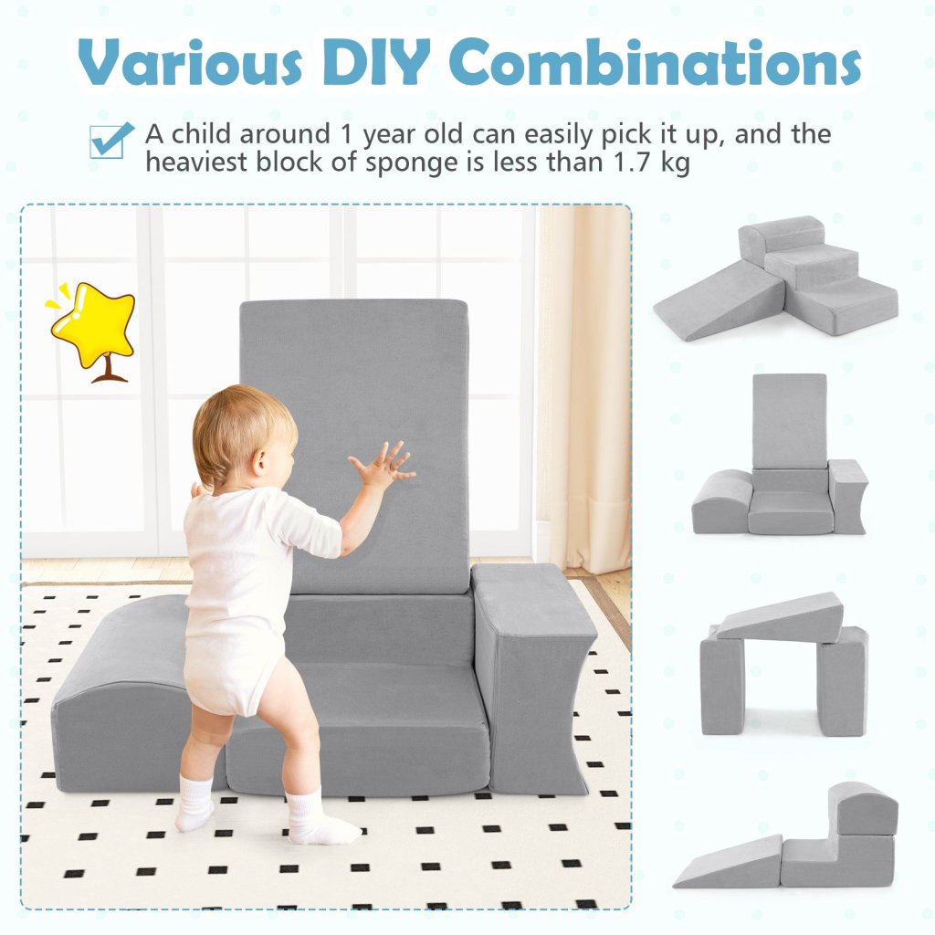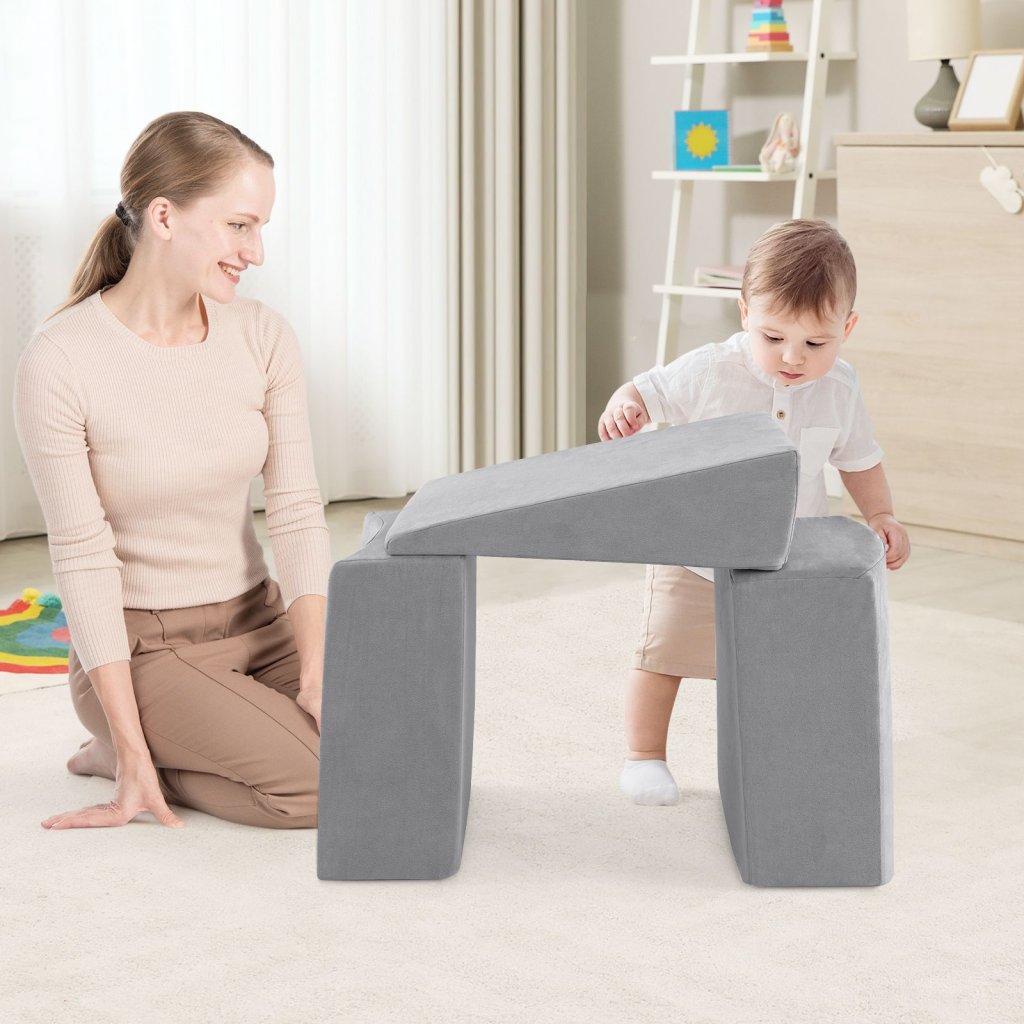 Každý díl je vyroben z měkkého, ale pevného molitanu, takže dětem nabízí bezpečné prostředí pro lezení, sklouzávání i stavění. Lehké bloky mohou malí dobrodruzi snadno přemisťovat a znovu skládat podle fantazie.